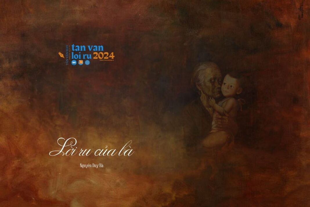Con qua bao miền quê, bao làng mạc núi đồi, qua nhiều cánh đồng mướt xanh màu lúa. Cũng có cánh cò bay lả trong hoàng hôn tím sẫm, cũng có ngọn khói bếp chiều bay là là trong nắng, cố lắng tìm một tiếng võng đưa, một lời ru nào đó có âm sắc tự lời ru của bà dạo nọ, để con được cảm thấy bình yên giữa dòng đời vội vã. Cho con mơ thấy mình được gối đầu lên gối nhỏ mà ngoáy miếng trầu thơm giúp bà, được bà phất đều tay quạt, lời ru của bà nhẹ nhàng tựa dòng suối mát, kể con nghe nỗi gian truân của cha mẹ, sự nhọc nhằn mẹ mang con con chín tháng mười ngày, từng đêm thâu thao thức qua nhiều cơn sài đẹn. Con mới thấu hiểu được công cha, nghĩa mẹ sâu nặng, lớn lao biết nhường nào!